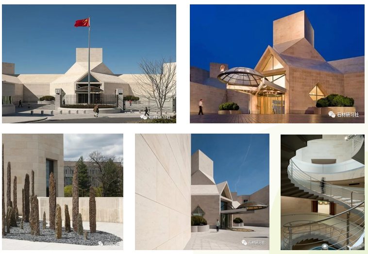 中国驻美大使馆由著名美国华裔建筑师贝聿铭设计,采用大勃艮第莱姆石。